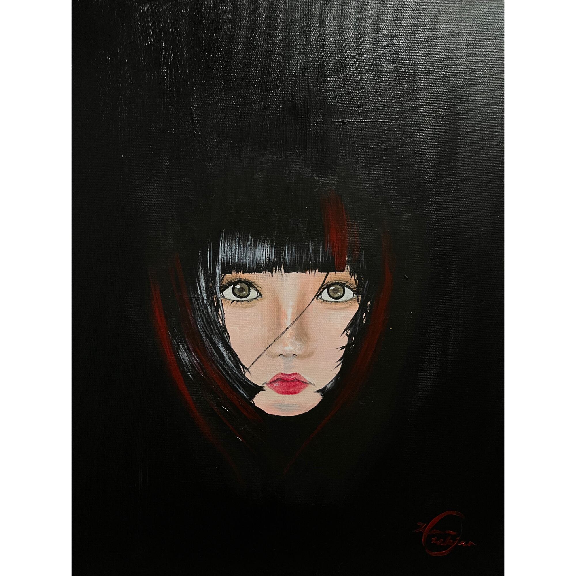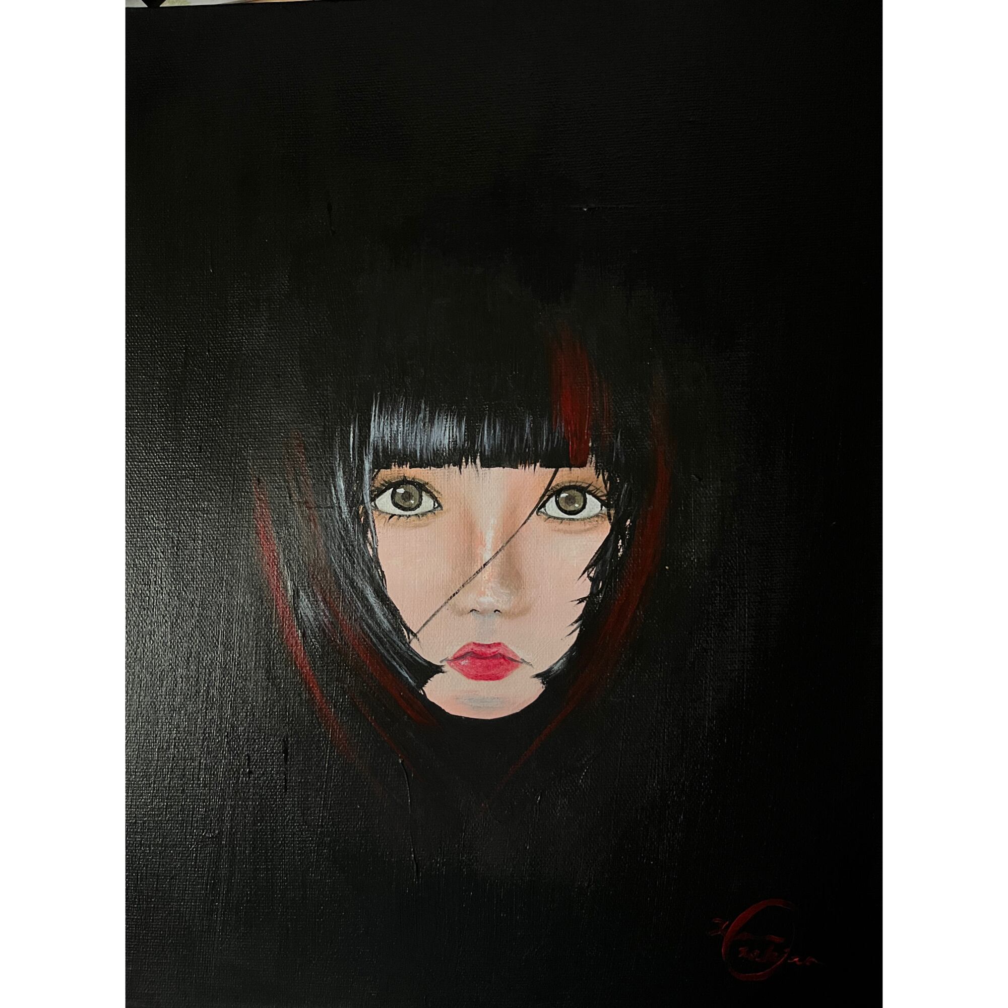 ■使用画材:アクリル絵の具(リキテックス)、化粧下地、アイシャドウ、口紅、ハイライト/キャンバス